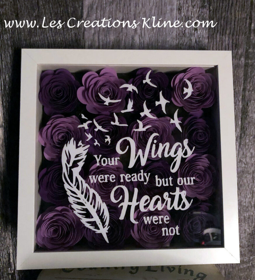 Ce cadre shadow box fait à la main est une façon douce et élégante d’honorer la mémoire d’un être cher. Avec ses fleurs de papier mauves et son message touchant, il apporte une présence réconfortante dans votre maison.