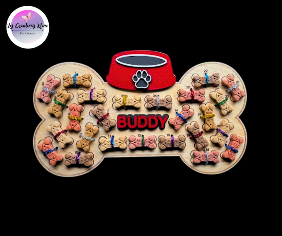 Vous pouvez le personnaliser avec le nom de votre chiot, un message spécial ou même un « Joyeux Noël » pour rendre votre décompte encore plus unique et magique. 🎁🐾