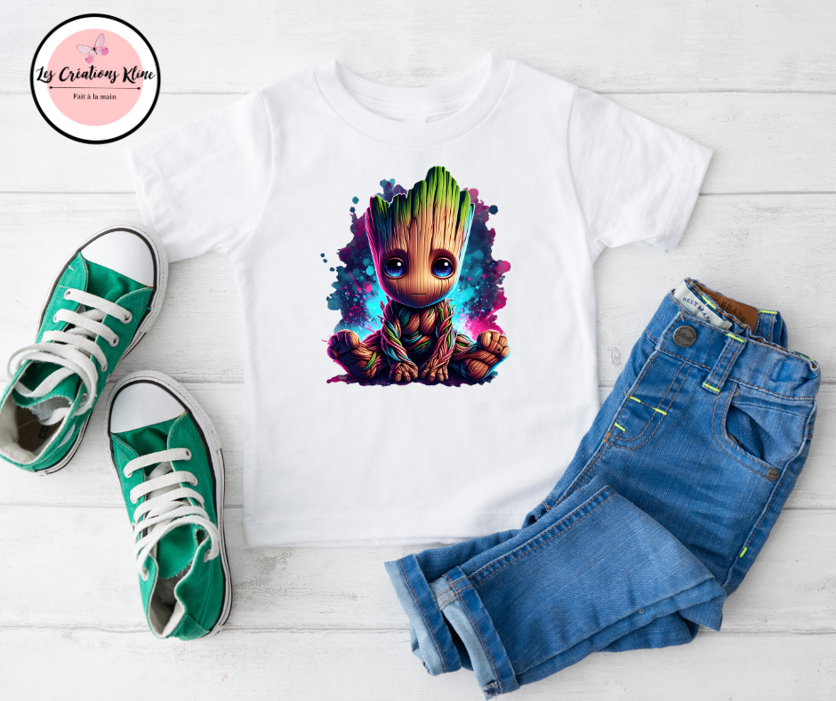 Votre petit fan des Gardiens de la Galaxie va adorer ce t-shirt à l’effigie de Groot, le personnage adorable et attachant 🌱.