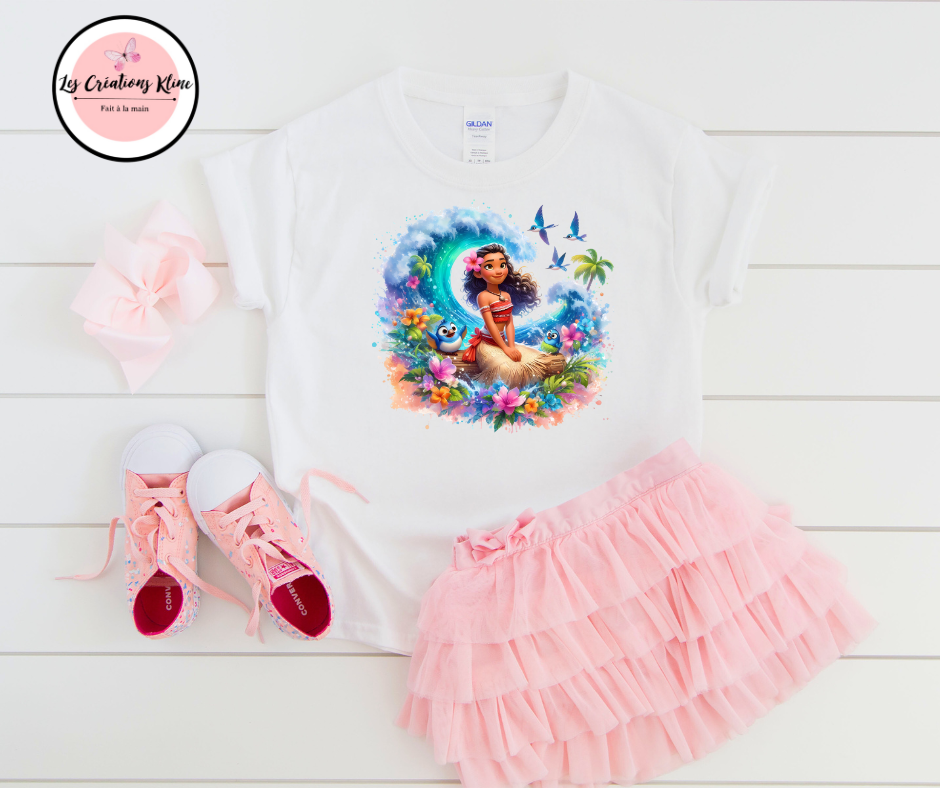 🌊🌺 T-Shirt Enfant – Motif Moana 🌺🌊