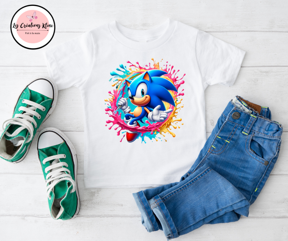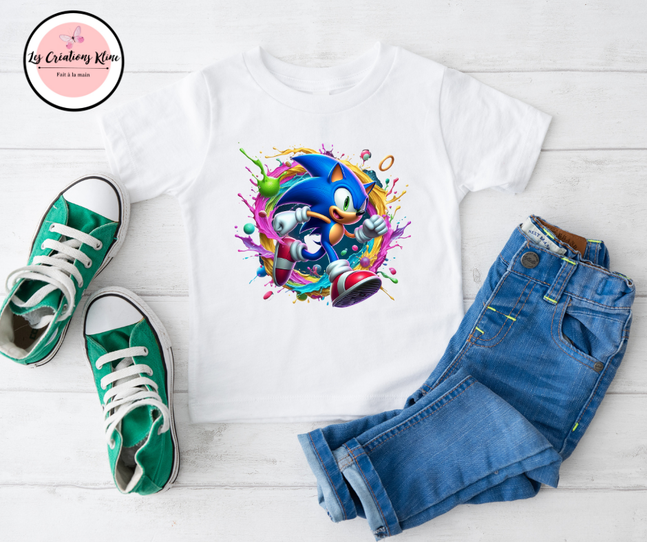 💙⚡ T-Shirt Enfant – Motif Sonic ⚡💙